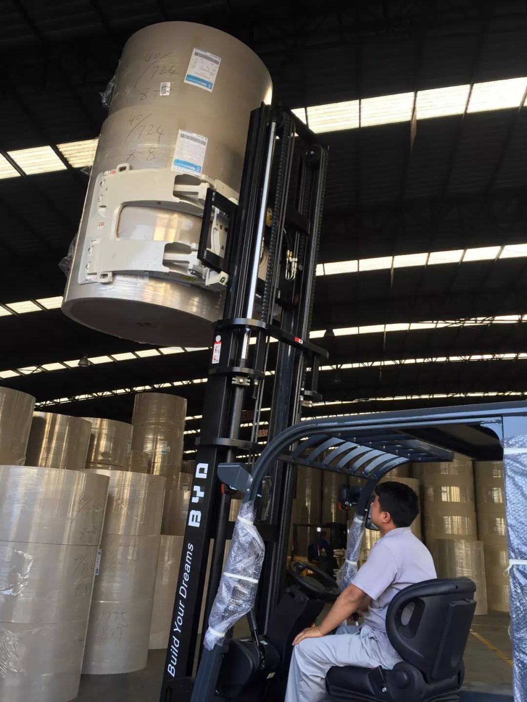第三,根据基地搬运限速要求,比亚迪叉车车速*高设定为10KM/H,同时配备的转弯降速、高位限速等功能,进一步确保了货物和人员的安全;