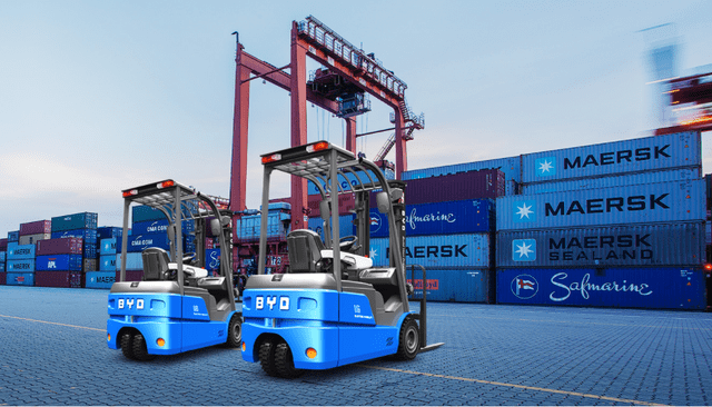 例如英国的一家大型跨境物流解决方案提供商,与比亚迪叉车合作的车型包括平衡重式叉车、前移式叉车等产品,主要用于仓库的集装箱装卸、仓内搬运以及上下货架等作业。客户认为比亚迪叉车转向流畅、动力强劲,且拥有创新的锂电池技术,充电快、能耗低,大大降低了设备的维修、保养等成本。客户对使用效果很满意,现在已经把仓库内上百台其它品牌的叉车全部更换为比亚迪叉车。